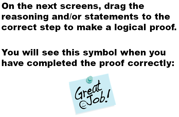 Definition of an angle bisector. All students should answer questions 3 and 4 that accompany the . One for statements and one for reasons. State the conclusion of the conjecture in terms of the diagram. Plan your argument and prove your conjecture. Choose reasons from the following list for. An introduction to proof illustrated by the triangle interior angle sum theorem (g.co.10). Prove each problem by using some or all of the cards mentioned in the problem. Z1 and 22 are supplementary. Properties of congruence from geometry. Using the techniques discussed in class. ∠ 8 is a rt angle . Intro to proofs in geometry · this is a lesson i created that i'm exceptionally proud of.